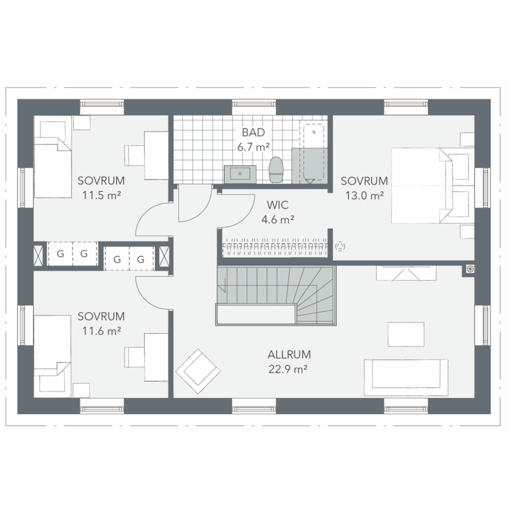 Snickarglädje, symmetriska fasader och spröjsade fönster för tankarna till förra sekelskiftets arkitektur. Här förenas gammaldags charm med dagens krav på hållbarhet och funktion. En välkomnande brokvist eller en inbjudande glasveranda med plats för härliga middagar förstärker det harmoniska uttrycket.